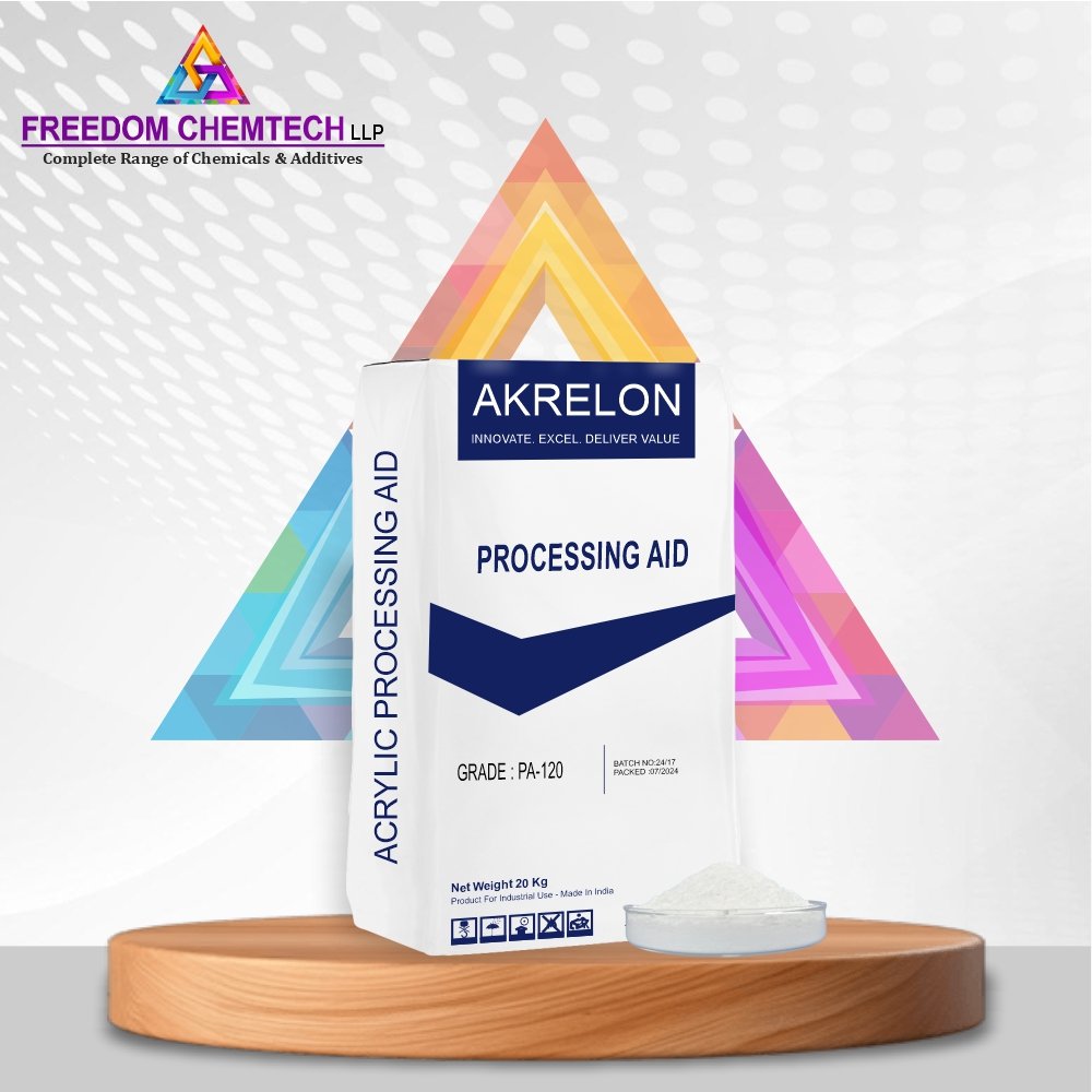 Akrelon PA 120 – Is a High – performance acrylic processing aid which imparts excellent melt homogeneity, filler dispersion and fusion properties to applications which contain low or high dosages of filler. It enhances the dispersion of filler and other additives, resulting in better impact strength properties.