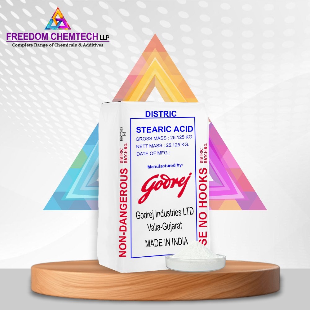 Distric stearic Acid (SA),Application – It is widely used in Coating, Inks, Rubber, Plastic, Tyres, Textile Axiliaries, Surfactants, Lubricants & Greases.
