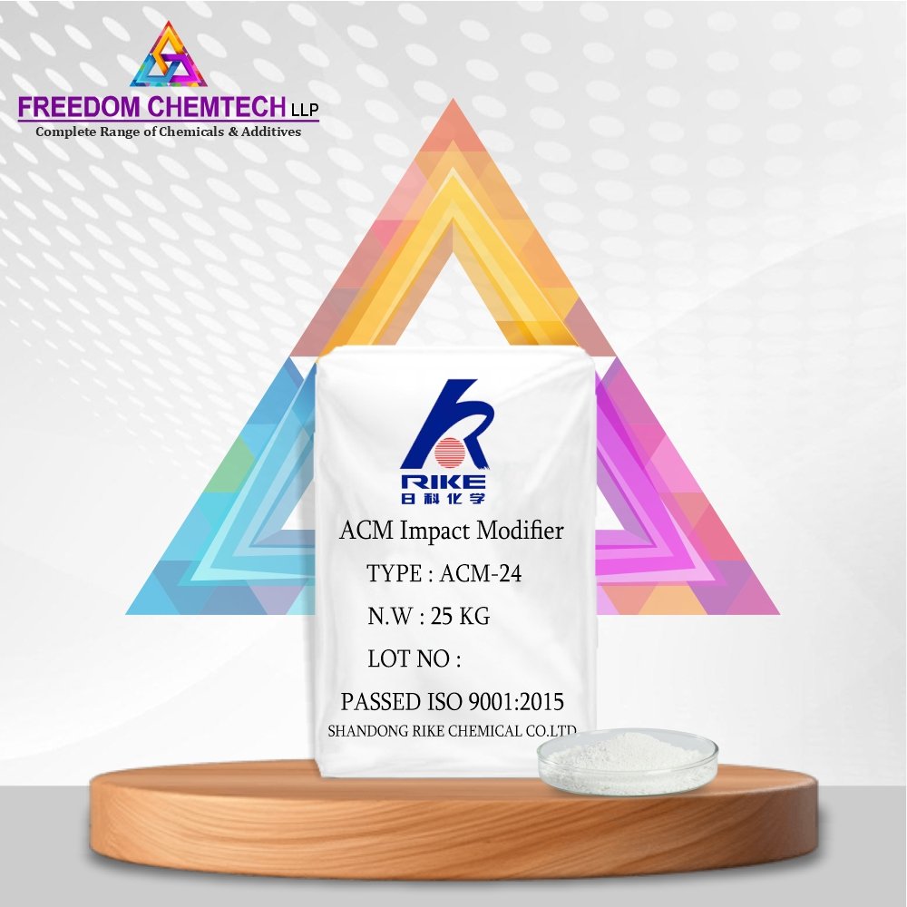 Rike ACM -24 (Impact Modifier) low temperature toughening modifier is our patent product. Compared with CPE, it gives PVC products higher elongation at break and excellent impact strength, Promoting Plasticization of PVC Mixture, Excellent elongation and toughness at break, Excellent Tensile Impact Strength at Low Temperature, Good weatherability, Improving the surface gloss of final products.